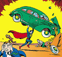 "Look at this," he said. "Watch me scare this guy." He gunned it, not really caring if he hit the strange figure or not. But the caped man actually leaped the car, landed behind it, spun, caught it by the rear bumper and lifted it into the air. Then he proceeded to shake the car, watching the occupants fall out the open doors.
