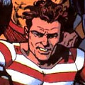 The costumed adventurers were getting knocked around. Johnny Thunder was about to call his Thunderbolt, but at that moment, Sandy caught a backhand slap from Namor and was sent hurtling into Johnny. Both were rendered unconscious. Sandman wanted to use his gas gun, but too many of this comrades were close to Namor. No one could seem to hurt him.