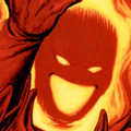 "No," Dormammu said, and hurled a mystic bolt at the Vision. He evaded it. The Vision reached out to the puffs of smoke coming from the fire pit. He became one with the smoke, turning into a wisp of smoke himself and disappearing.